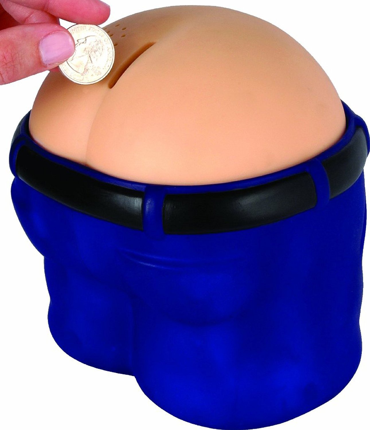 Pfffft! Drop some loot and hear it toot! Fanny shaped coin bank will make fart noises when coins are dropped in the slot. This hilarious farting bank makes a perfect gift for the jokester in your life. Requires 3 AA batteries (included), no assembly required.