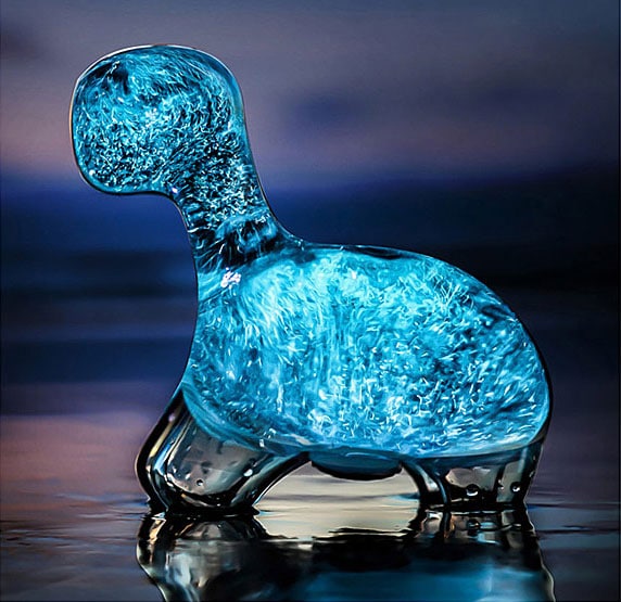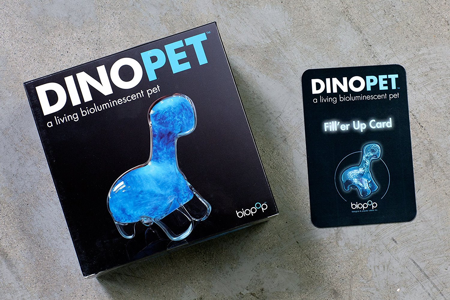 What is the Dino Pet? The Dino Pet is a living, interactive 'pet' that photosynthesizes during the day and glows brilliantly when you play with it at night. The alluring blue glow emitted by the Dino Pet is bioluminescence, made from microscopic sea life called dinoflagellates. By using sunlight, water and nutrients, instead of batteries or electricity, the Dino Pet allows you to hold one of nature's most magical occurrences in the palm of your hand. Far more than a toy, the Dino Pet is a contemporary living art piece, introductory pet, biological magic trick, conversation starter and science lesson that instills a sense of wonder in people of all ages.