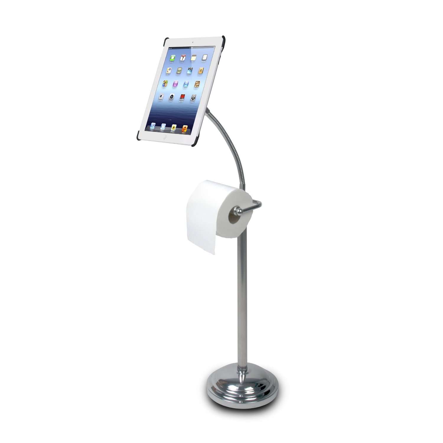 The iPad and new tablet technology are revolutionizing how and where we view entertainment. CTA Digital’s Pedestal Stand for iPad provides a convenient way to comfortably enjoy apps, eBooks, videos and web browsing at home. The bendable gooseneck stand allows you to adjust to any viewing angle, orientation or position you may need and securely holds the iPad. Simply slide and snap the iPad into the padded stand. The elegant chrome pedestal also features an optional toilet paper roll holder and a solid heavyweight base that will stay in place. So add luxury and convenience to your décor with CTA Digital’s Pedestal Stand for iPad. Specifications: - Compatible with iPad 2 and iPad (3rd and 4th Generation) - Up to 32” tall with flexible 10” metal gooseneck stand - Base Diameter: 7.5” - Weight: 7.25 lbs. - Package Includes: (1) Pedestal Stand for iPad with Roll Holder