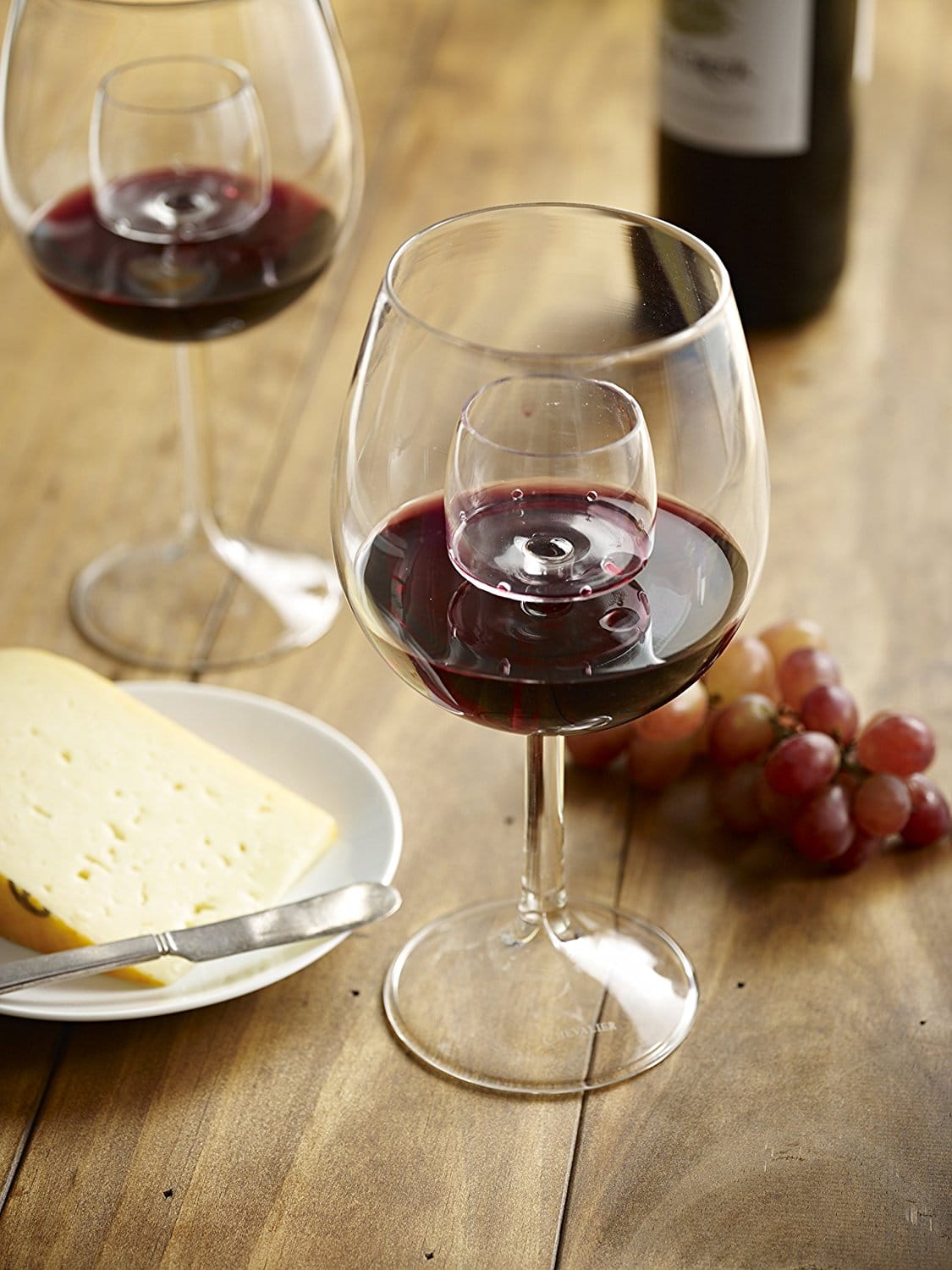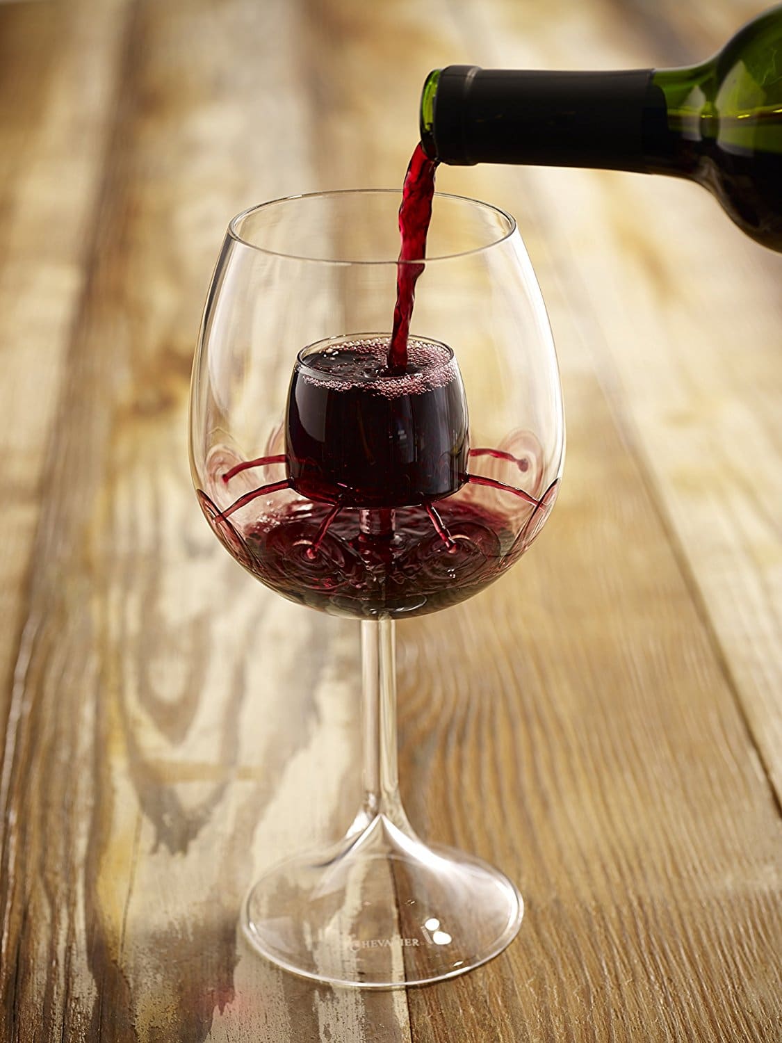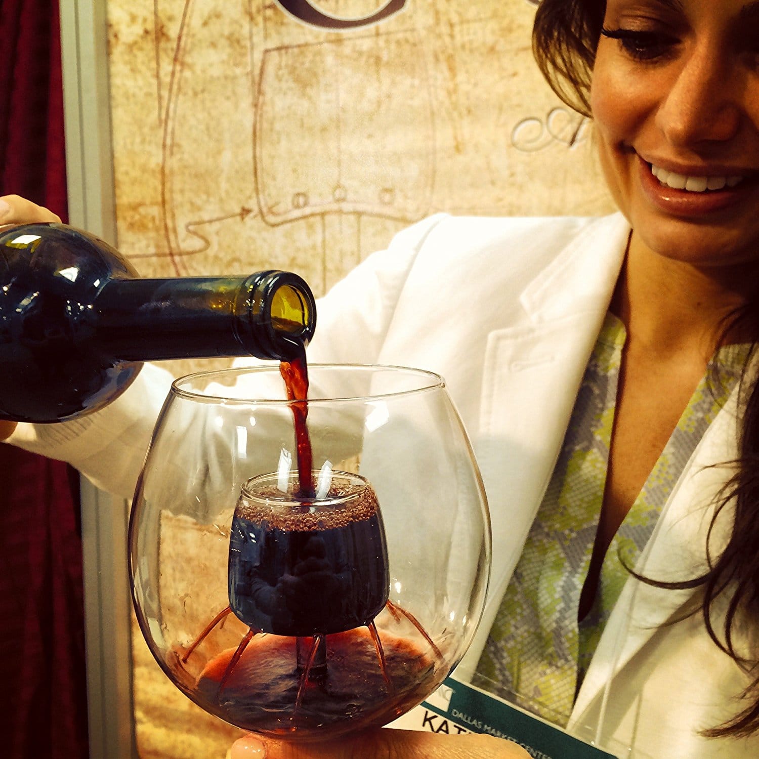 Pour into the aeration vessel in the center of the glass. The wine will cascade through, resulting in 7oz of aerated wine that's ready to please your pallet.