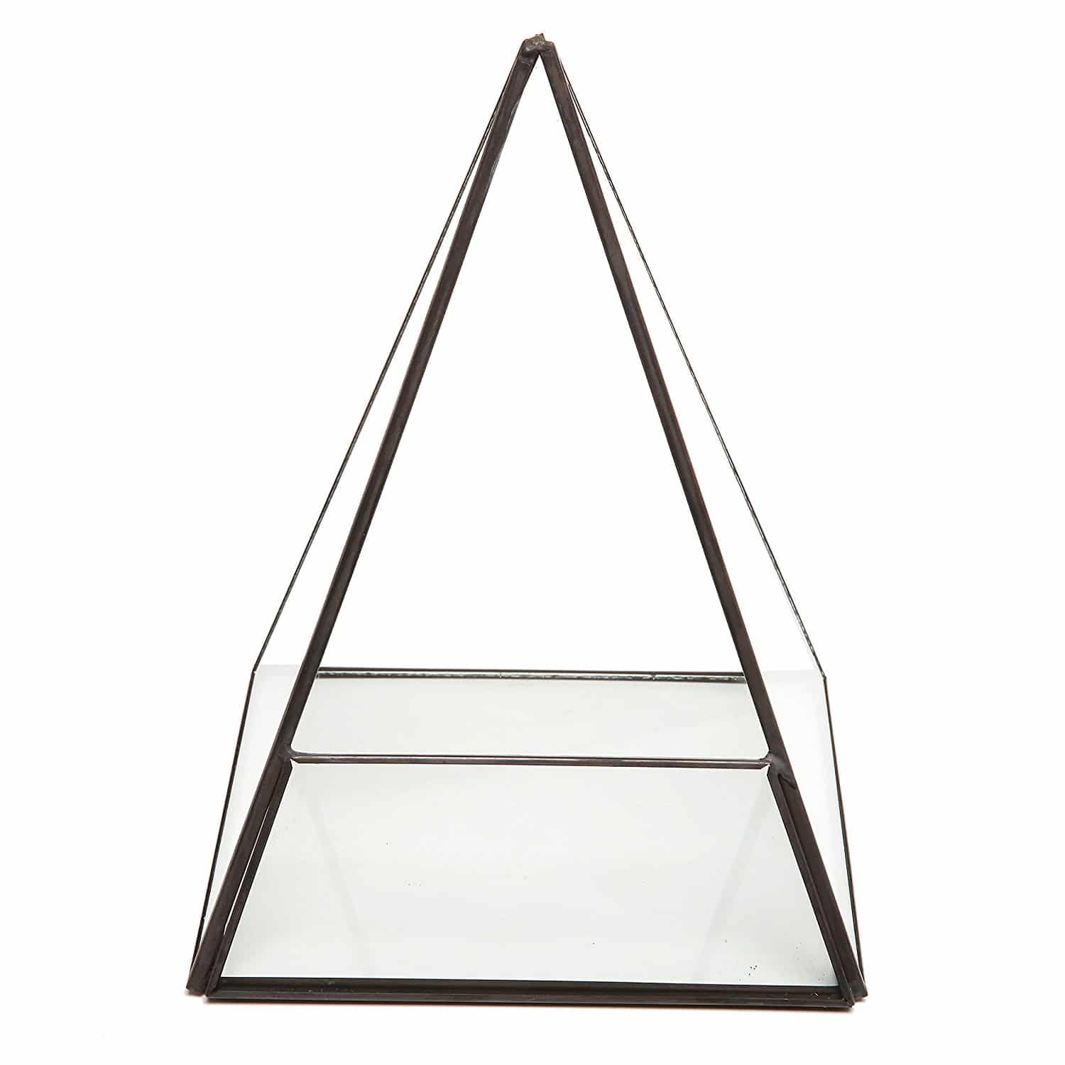 Perfect for displaying small plants and objects as well as for adding a decorative centerpiece to any space, this modern glass pyramid designed terrarium makes an excellent addition to any home. The glass structure allows you to see all sides of the plants, candles, or decorative items arranged inside, and the unique pyramid structure adds the perfect touch of classy, modern style. Use as a terrarium or as a minimalist piece on its own to bring modern elegance to any space.