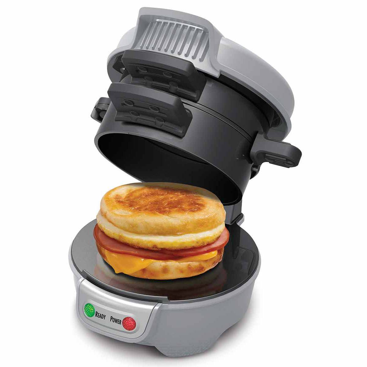 That’s where the Breakfast Sandwich Maker by Hamilton Beach comes to the rescue. It’s all about making a fresh breakfast sandwich you can grab and go. Just choose your bread and layer on the fixings: egg, cheese, precooked meat, or the ingredients of your choice. In five minutes or less, your perfectly assembled breakfast sandwich is ready to eat. You can customize your breakfast sandwich with a practically endless variety of fresh ingredients. Now you know why everyone who loves breakfast sandwiches wants this product in their kitchen!