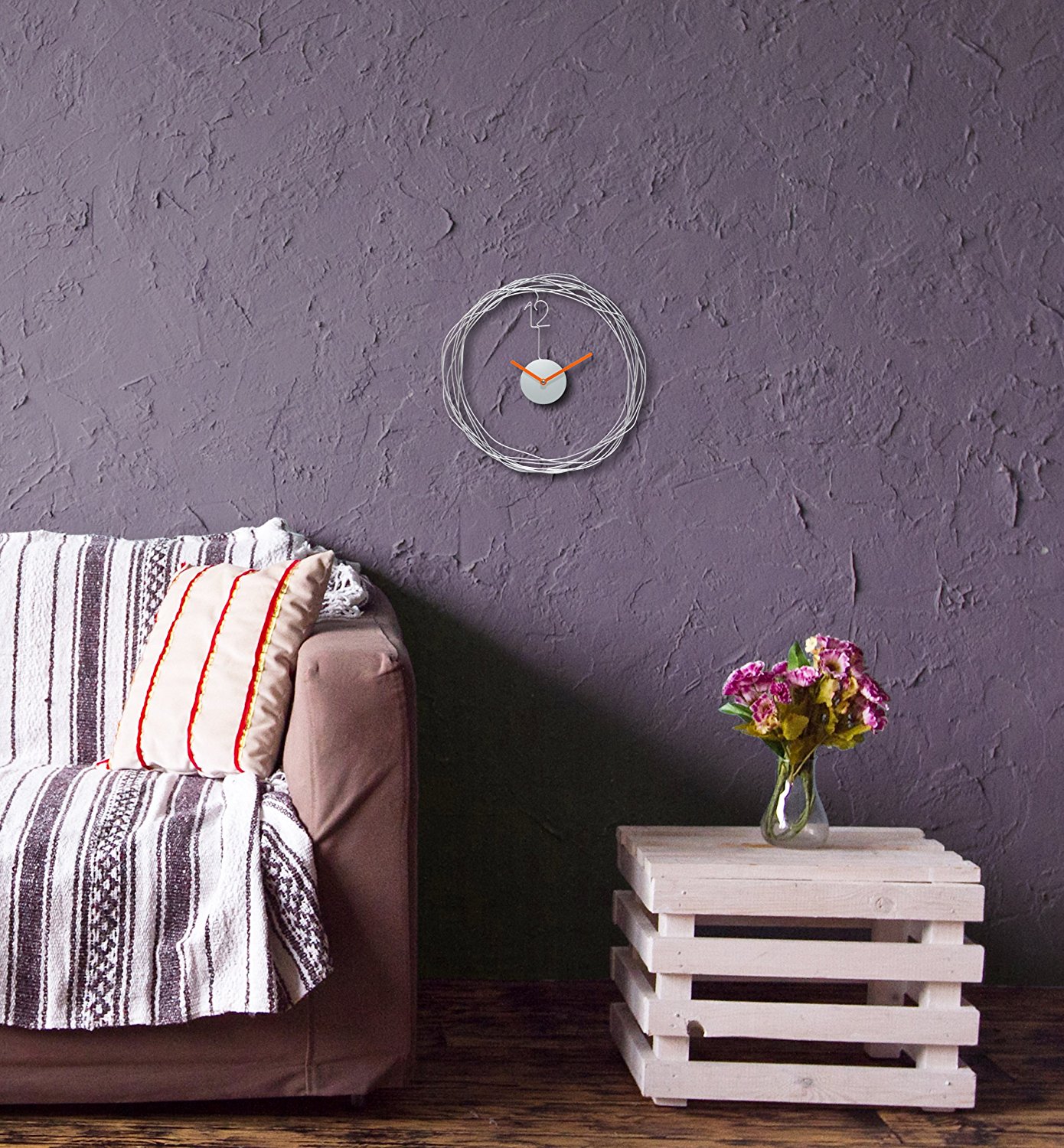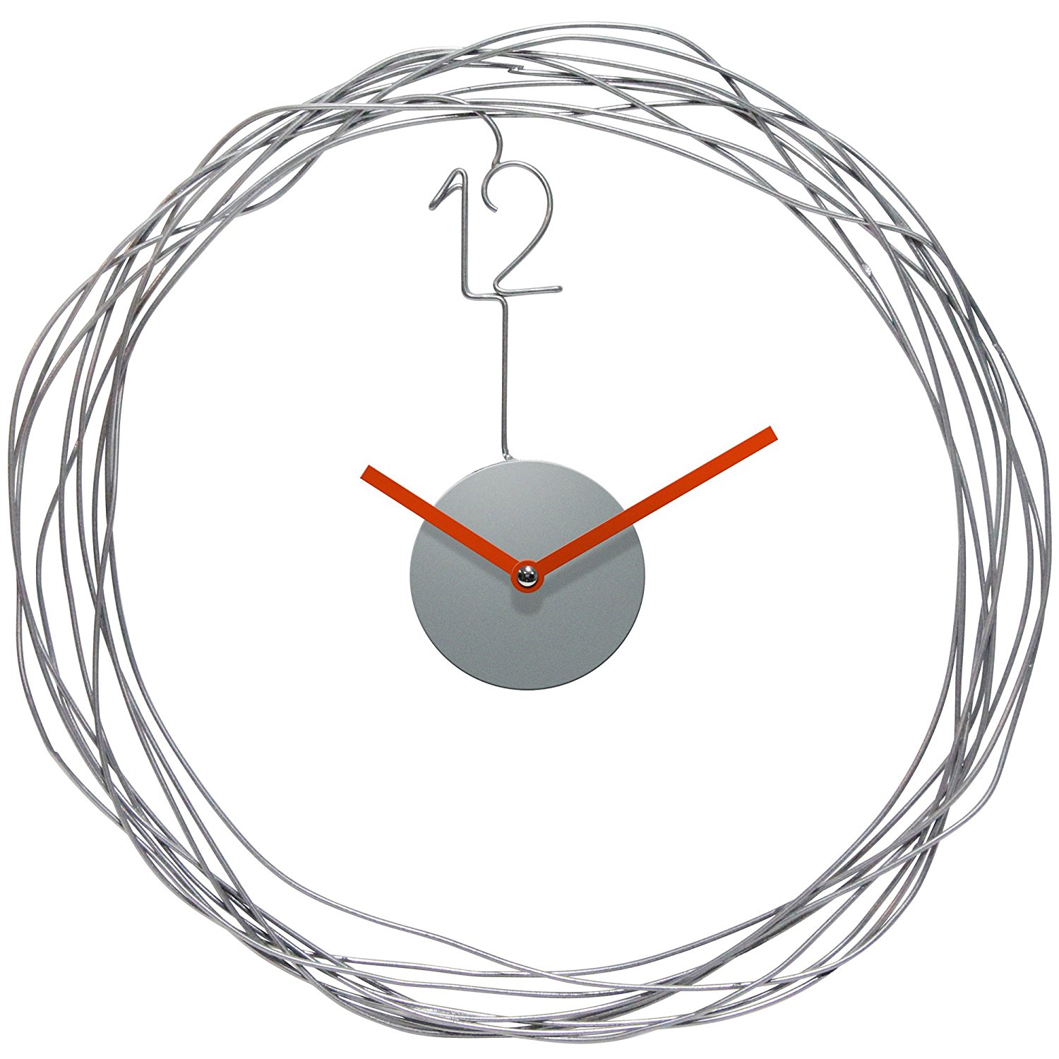 The Infinity Instruments Wire Transfer 14" metal wire wall clock is a stylish wall clock with a Metal Wire Case, Orange Metal Hands and an Open Face.