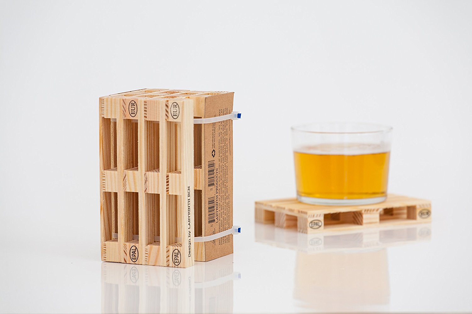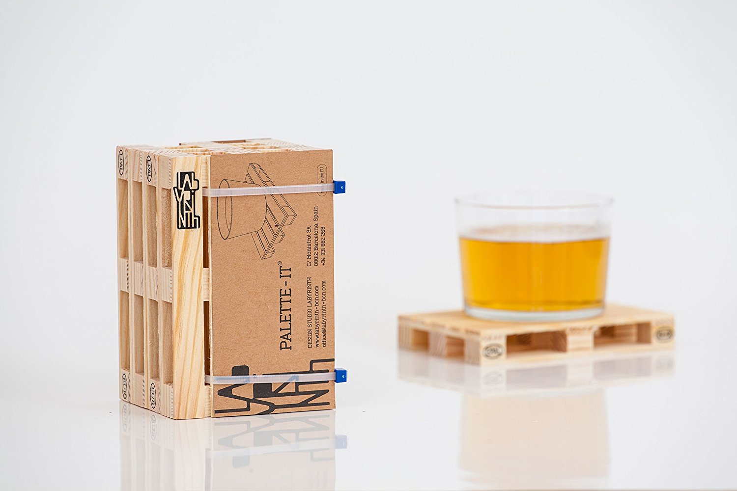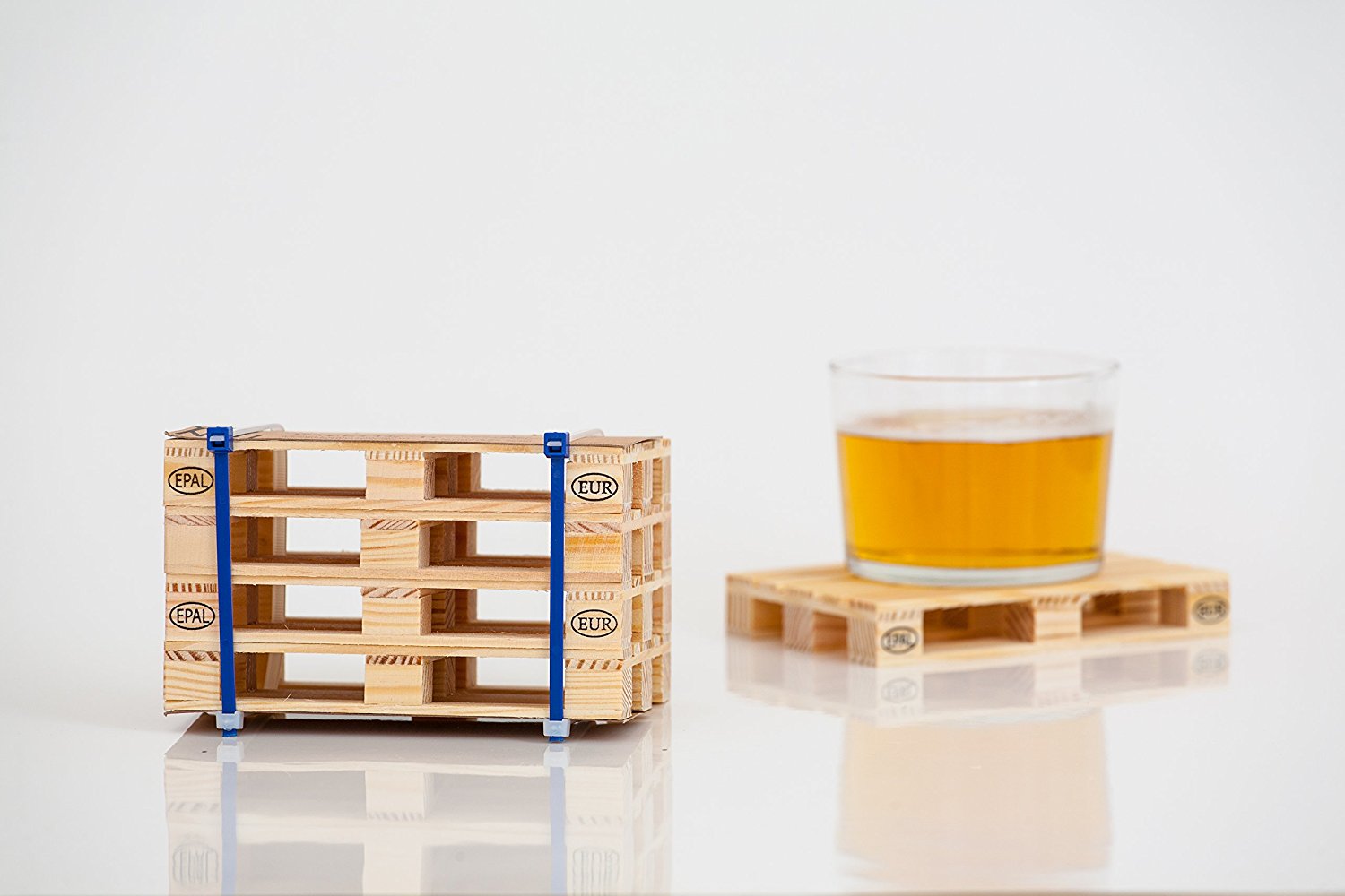 Package includes 4 miniature wooden pallet coasters great for protecting surfaces from hot or cold drinks