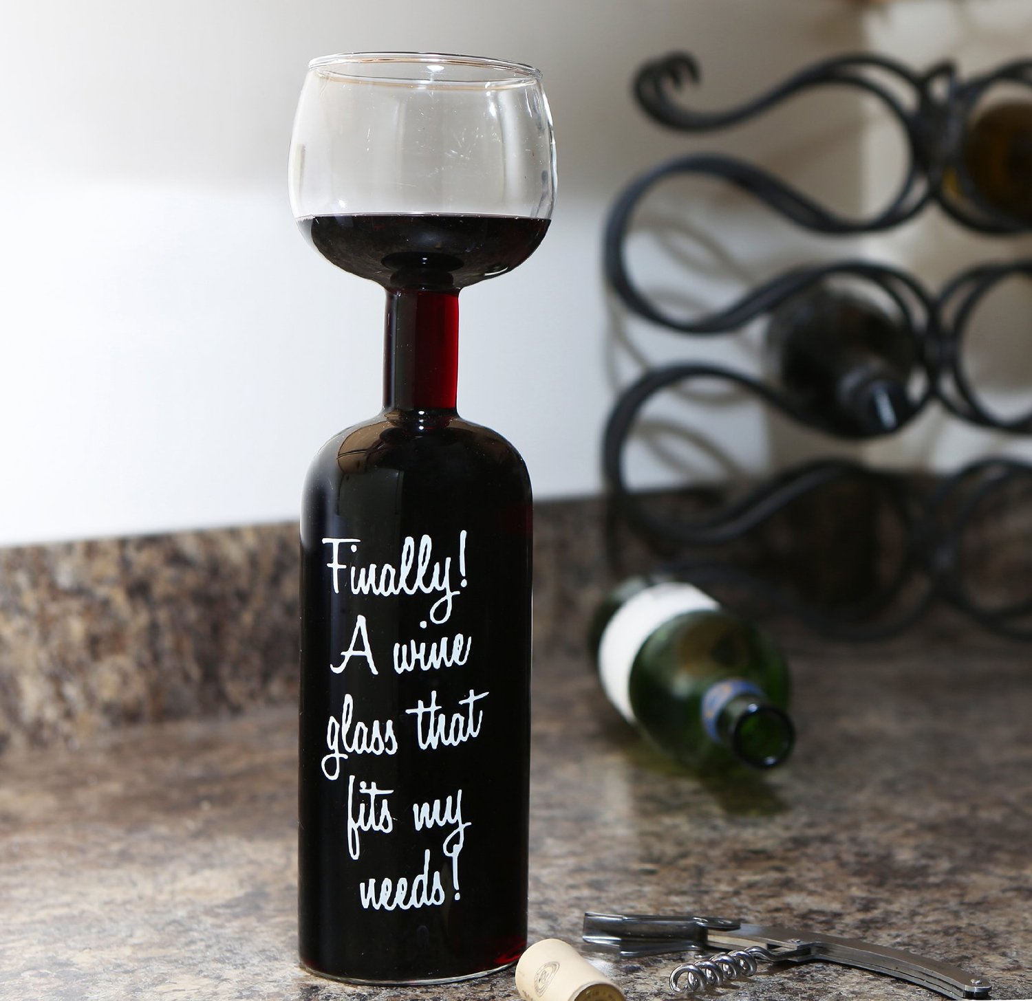 Finally no more judgmental looks from family and friends when you continue to refill your glass. Our Ultimate Wine Bottle Glass holds a full bottle of wine. It truly is a wine glass that fits your needs.