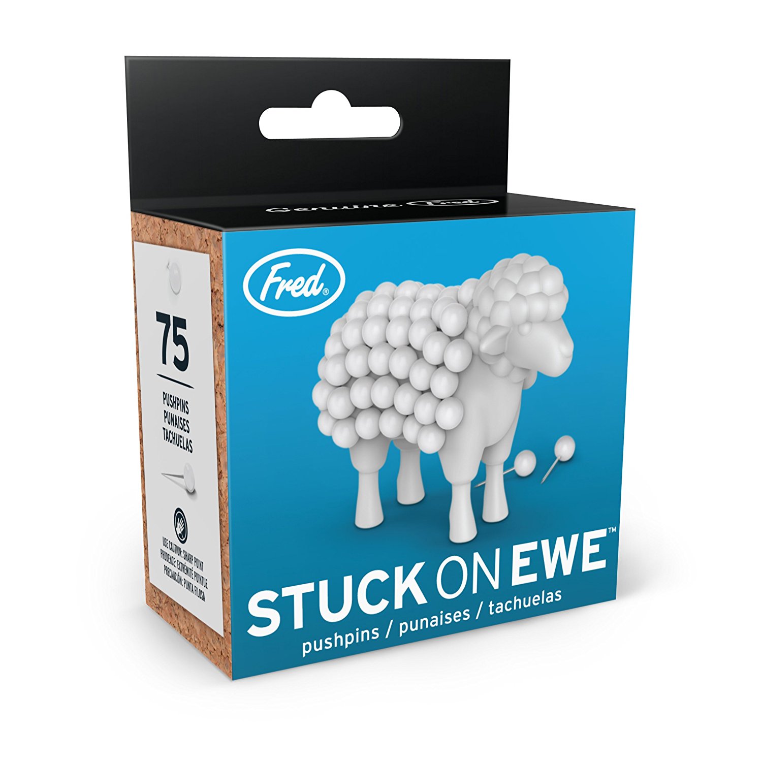STUCK ON EWE will help keep you organized with its flock of 75 removable pushpins. The wooly sheep is made from non-toxic PVC-free TPR and doubles as a handy eraser!