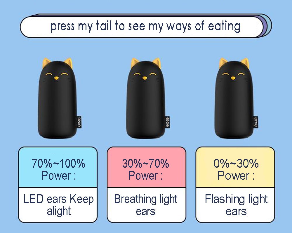 - Innovative way to indicate the battery level with the LED Cat ears.