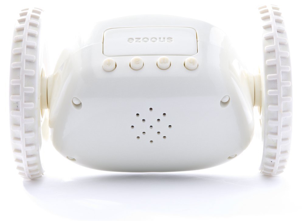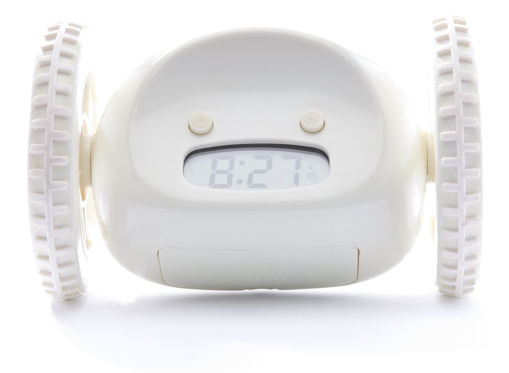 When alarm sounds, Clocky leaps from your nightstand and runs away