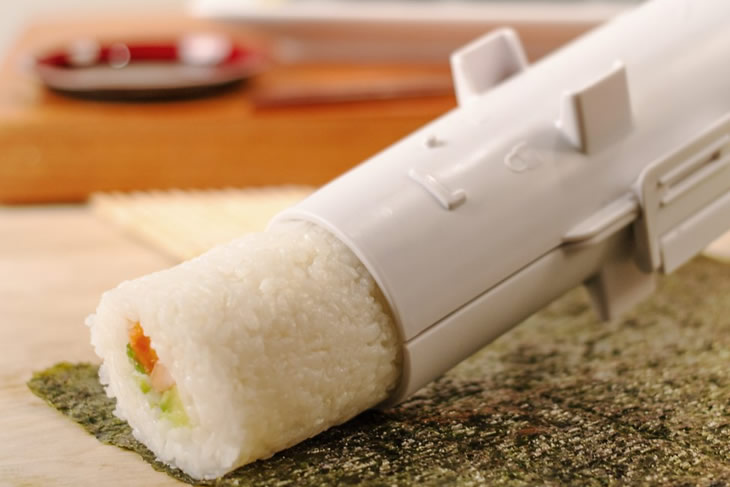 With our sushi maker it`s so fast and easy to make it at home. Just imagine! You can make it any time you want with any stuff you like. You can add sushi to your regular diet without going to restaurants or waitin for devivey. Save time and monney, make a home sushi-party or impress your sweetheart with unusual dinner. Made of high end quality plastic, our sushi maker is durable and strong. This sushi maker forms a perfect bond between luxury and precision. Cooking isn't only about sheer talent and taste - it's also about having the right equipment. Our sushi making kit can be used to create all kinds of delicacies, such as cake rolls, fudge rolls and many many more! With just three easy steps,simply fill the tube with rice and add your favorite ingredients, then plunge the rice right through the tube onto a nori sheet, Voila, the perfect sushi maker! Great aid for large dinners, it will have your guests coming back for more perfectly formed sushi. Impress your friends and significant others and cultivate your sushi making talents!