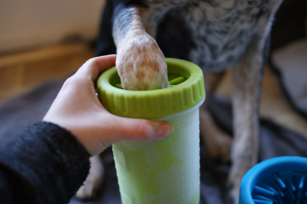 To use, add a little water, insert the muddy paw, do the twist, dab the paw dry, repeat for 3 more paws