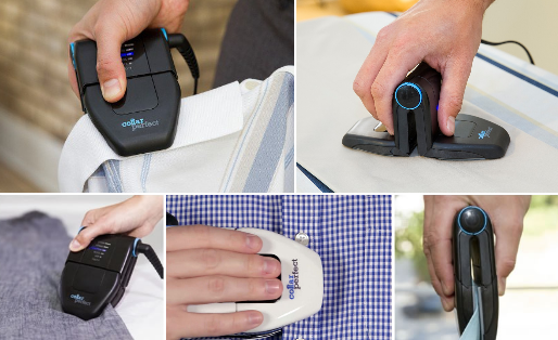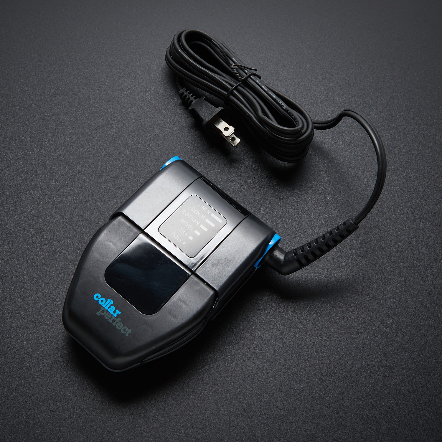 Collar Perfect is a compact and quick ironing solution that works by clamping onto collars, cuffs, creases, between buttons, and other parts to smooth out wrinkles. What makes it Perfect is the ability to transform by opening to flatten the wings for use like a regular iron. Collar Perfect comes with five adjustable temperature settings and international power support to iron out all of life's wrinkles. The unique design allows for quick and easy touch ups along pesky shirt collars, between buttons, along pant creases, and other hard to reach areas. The convertible wings rotate for traditional ironing on the fly for when you need more than a quick touch up.