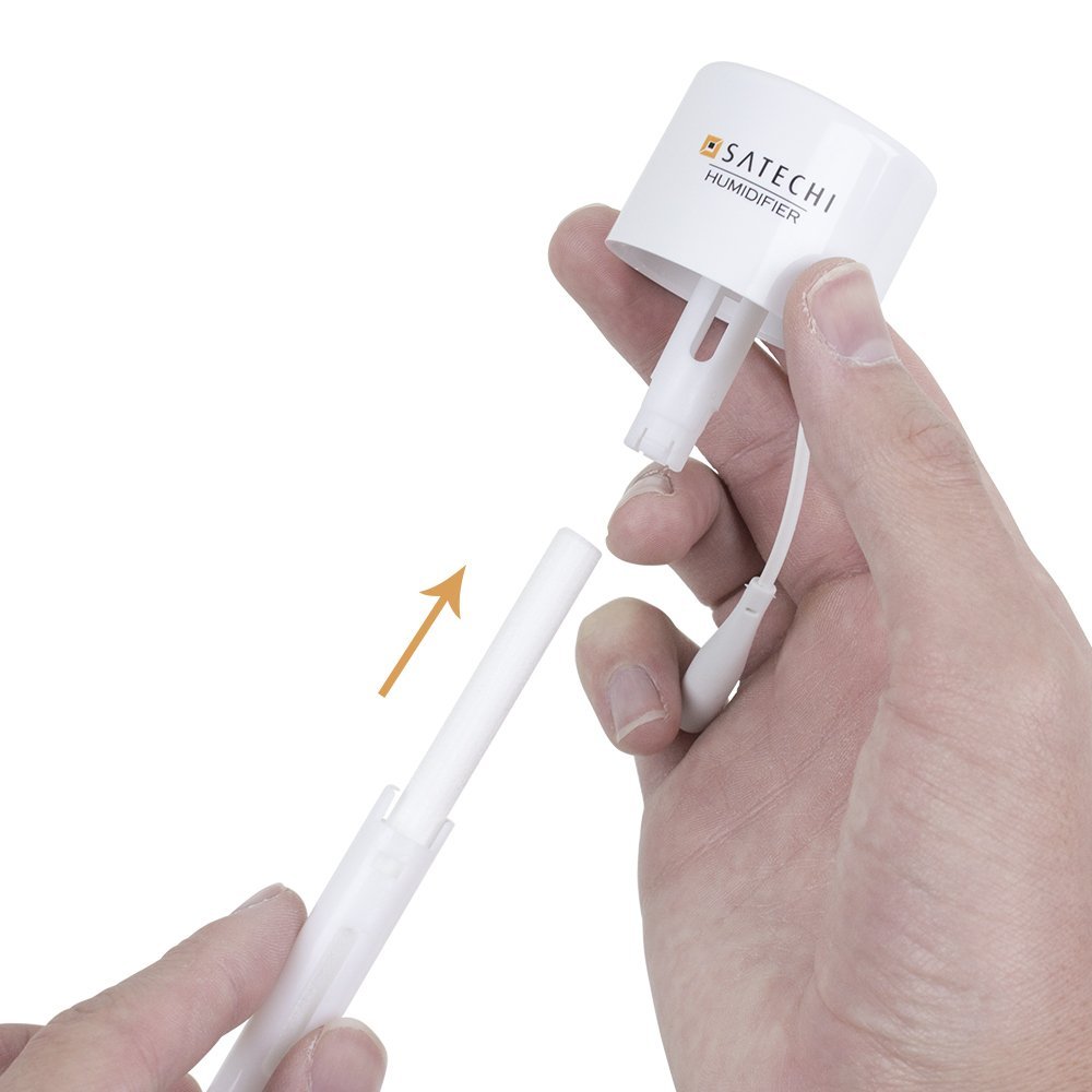 The Satechi USB Portable Humidifier creates a soothing personal space at home, the office, in a car, or traveling. To use, fill a bottle or cup with purified water, place the humidifier into the opening, making sure the filter is submerged, & plug the humidifier into a USB port for instant comfort. To turn off, unplug it or wait until it automatically shuts off after 8 hours. You can then refill the bottle & plug the humidifier into a USB port to turn it back on. Add liquid fragrances or essential oils to the water for a relaxing environment