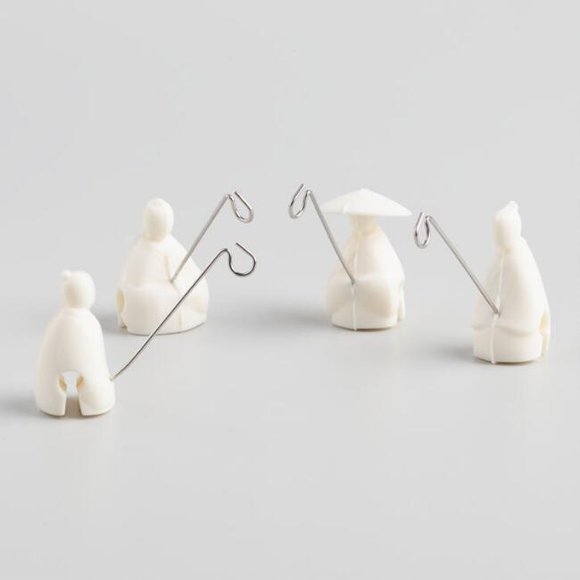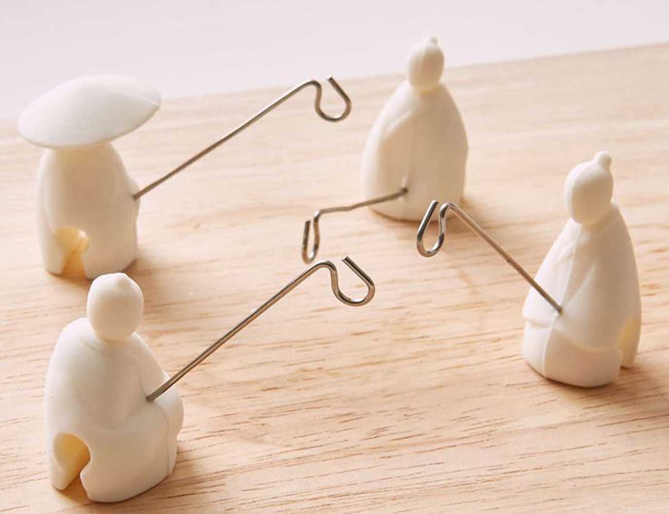 These tea holders are based on old Chinese story of Jiang Taigong. He uses a straight fish book because he believed that the fish will come to him when they were ready to be fished. Now he can patiently hold your tea bag while it steeps. Set of 4.