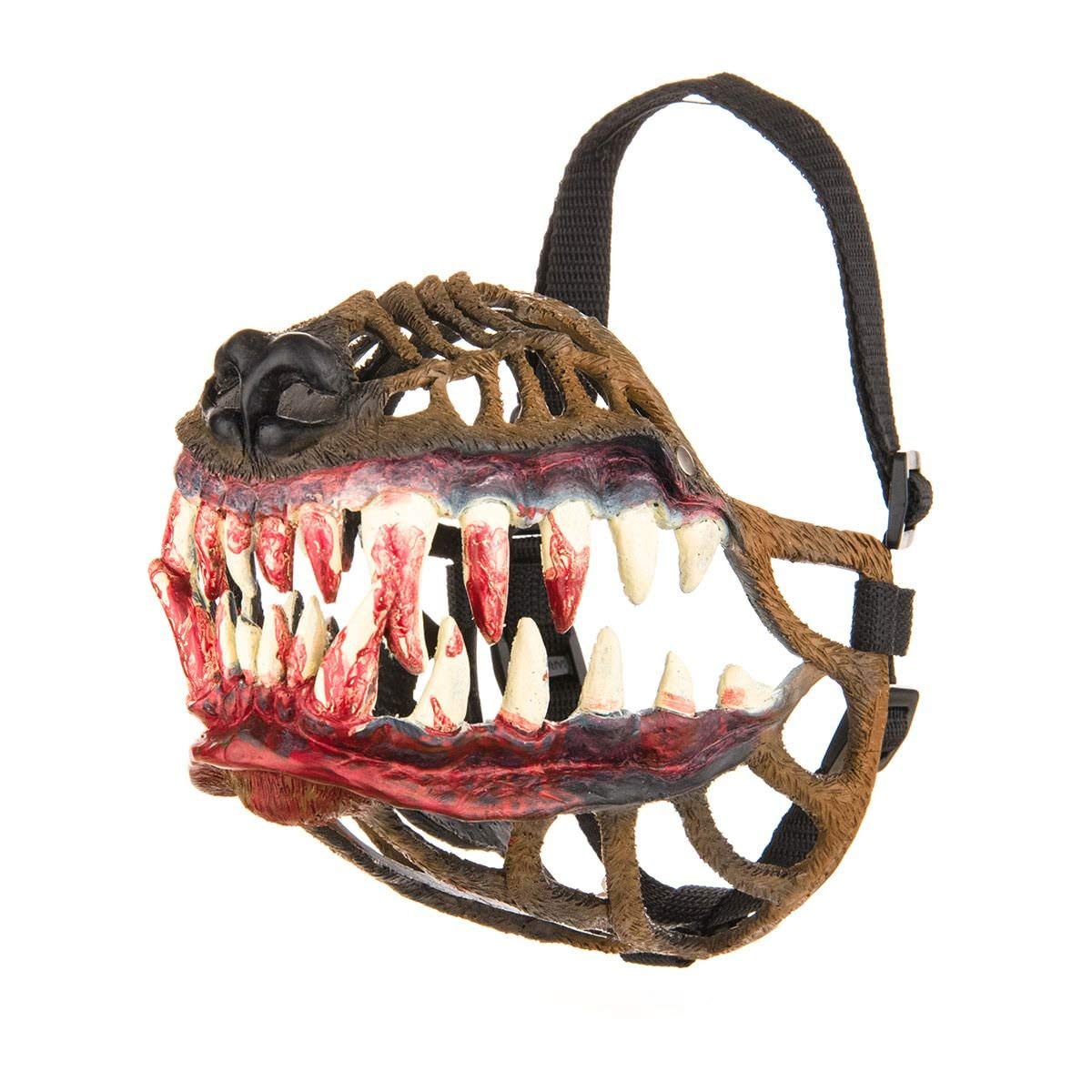 If you’re afraid to walk your dog at night (and your dog is the kind that would rather lick the attacker than protect you) – this werewolf muzzle is for you! This is the all dog breeds muzzle that can transform any angelic looking pooch into a menacing werewolf. The muzzle permits your dog to slightly open its mouth, allowing it to pant. It is made from non-toxic plastic and nylon.