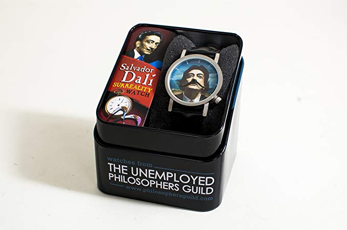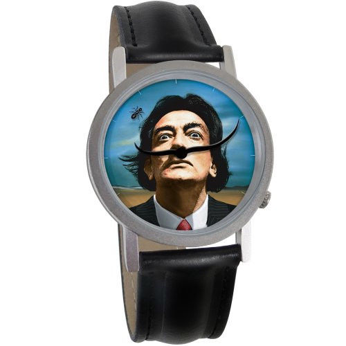 The other day, we were sitting in our cucumber slicing our eyeball with a razor blade when a brilliant idea came to us. "Hey, we should make a Salvador Dali watch!" So we took off our serpents, revived the bread basket, and got down to work. It took awhile, but we designed a wristwatch that we think Salvador himself would be proud to wear. The face of the watch depicts Dali himself, and his moving mustache serves as the watch’s hands. An ant marches around the rim of the watch, ticking off the seconds. The Dali Watch has a Japanese quartz movement. Face is 33mm in diameter. Leather band. Not waterproof.