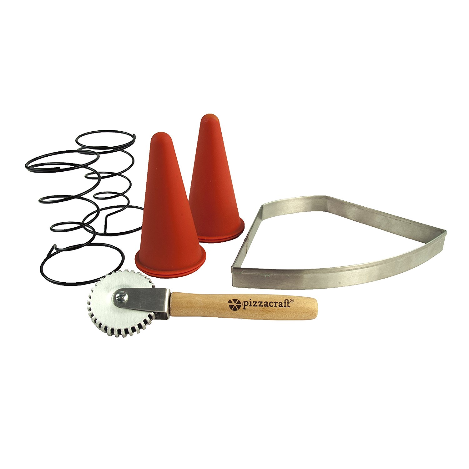 Pizza Cones are a fun way to make personalized pizza with your friends and family. For use in oven or grill. Roll out pizza cone dough to 1/8" thickness and large enough surface area for the dough cutter to fit twice. After cutting the dough into shape, remove excess dough. Moisten the edges of the dough with water or egg wash and fold the dough over in half so the edges meet. Press down on the seam with your fingers and then run the crimper along the edge to thoroughly seal the seam. Let the cones rest on the cutting board for 10-15 minutes; re-roll remaining dough to form additional pizza cones following the process described above.