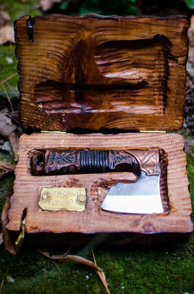 Straight razor warrior axe in Viking Celtic Nordic style is an original men's gift. Axe Razor is made by hand with the handcarving wooden box. The old world axe razor can become unforgettable present. It is a real straight razor. It is sharp. It is made of tempered steel. This men's present will not remain unnoticed since this item is not only hansome souvenier but also practical and useful stuff for everyday care.