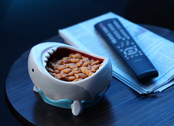 Just when you thought it was safe to go back in the kitchen. This 20 oz. 6" x 4" x 6" ceramic bowl looks like you're reaching into the gaping maw of a shark! Dishwasher and microwave safe. Perfect for shark week parties, pirate themes, and chowder eatin'!