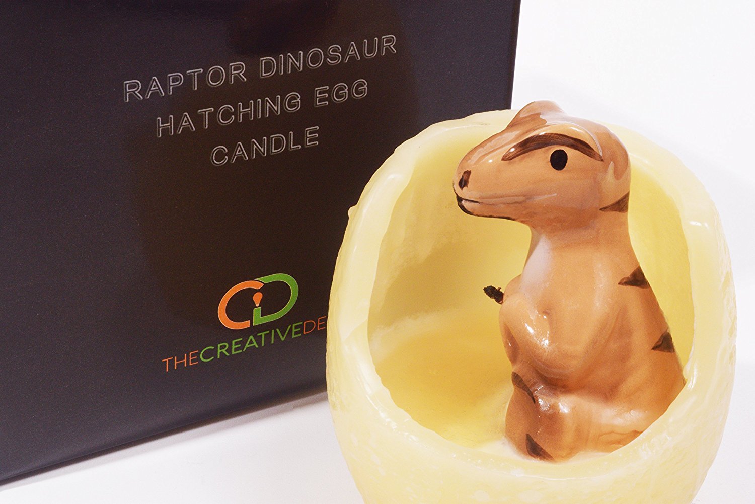 Raptor Dinosaur Hatching Egg Candle is the perfect gift for the dinosaur lover in your family. This uniquely designed product is a wonderful addition to the creative environment that we create at our desks and home. Watch as the 65 million year old Raptor dinosaur hatches from the clean burning, non-scented candle. Hand crafted by master craftsmen the egg and wick construction is unmatched and will burn perfectly every time. The one of a kind handcrafted glass dinosaur figurine has been impeccably crafted and designed and will certainly be a welcome addition to any dinosaur collection. The Creative Desk family is dedicated to creating products that are inspiring, useful and fun. Believe us, we know! We spend our days at our desks and we are on a mission to make these hours as inspiring, fun and creative as possible. Our product line will only increase in the future and we hope you’re as excited as we are for upcoming product offerings that will inspire and ignite the creative energy to finish that next project.