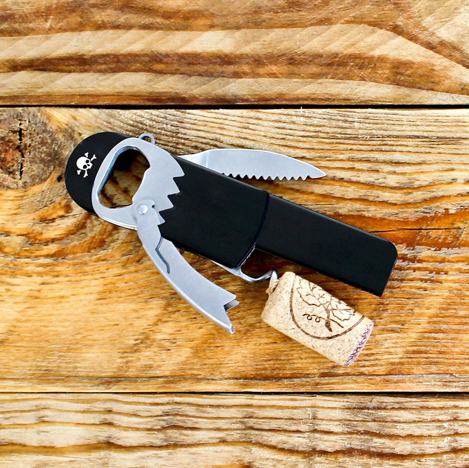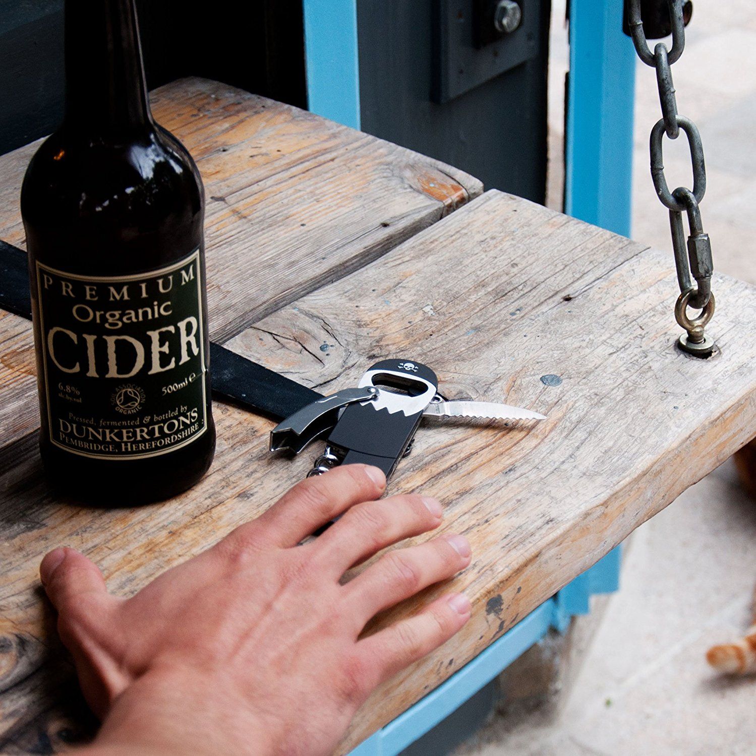 Corkscrew with easy open lever, foil cutter and beer bottle opener